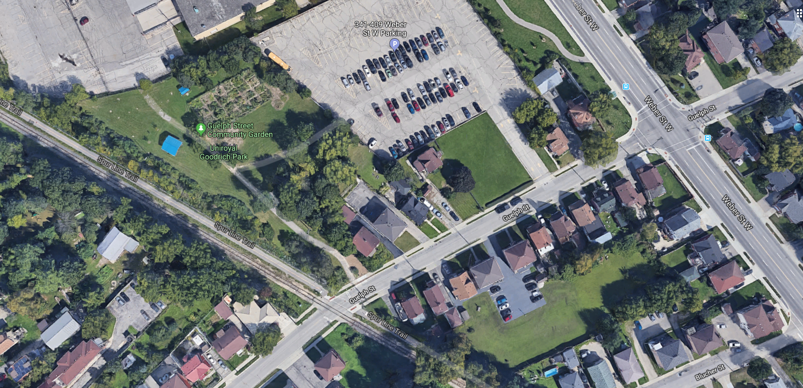 Like many neighbours, you might be asking… where the heck is Uniroyal Goodrich Park? It’s a hidden gem beside the Spurline Trail at Guelph Street. The Guelph Street Community Garden is located there.