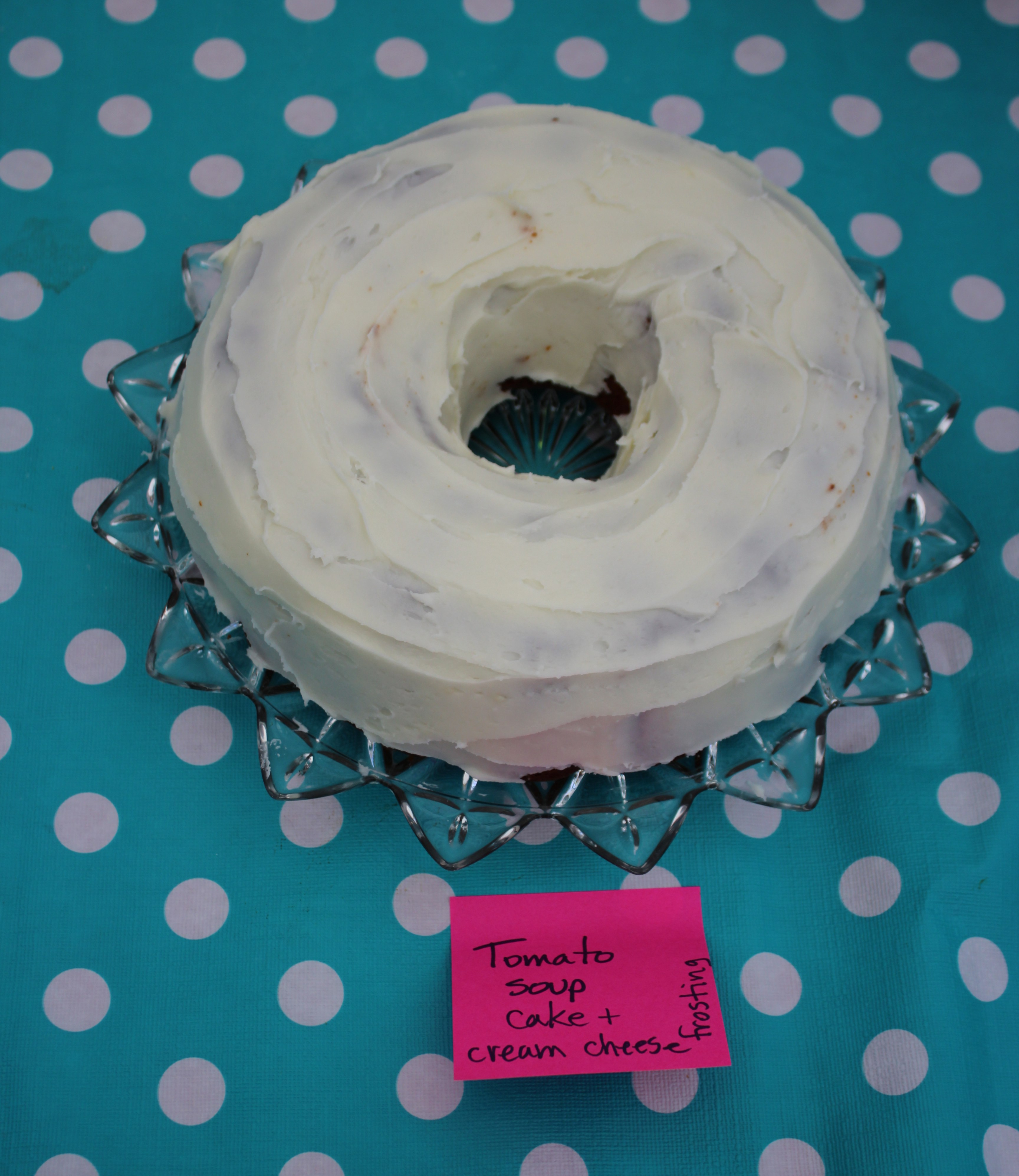 I’m curious about the ‘tomato soup’ cake with cream cheese icing…. Tell me about it if you had some!