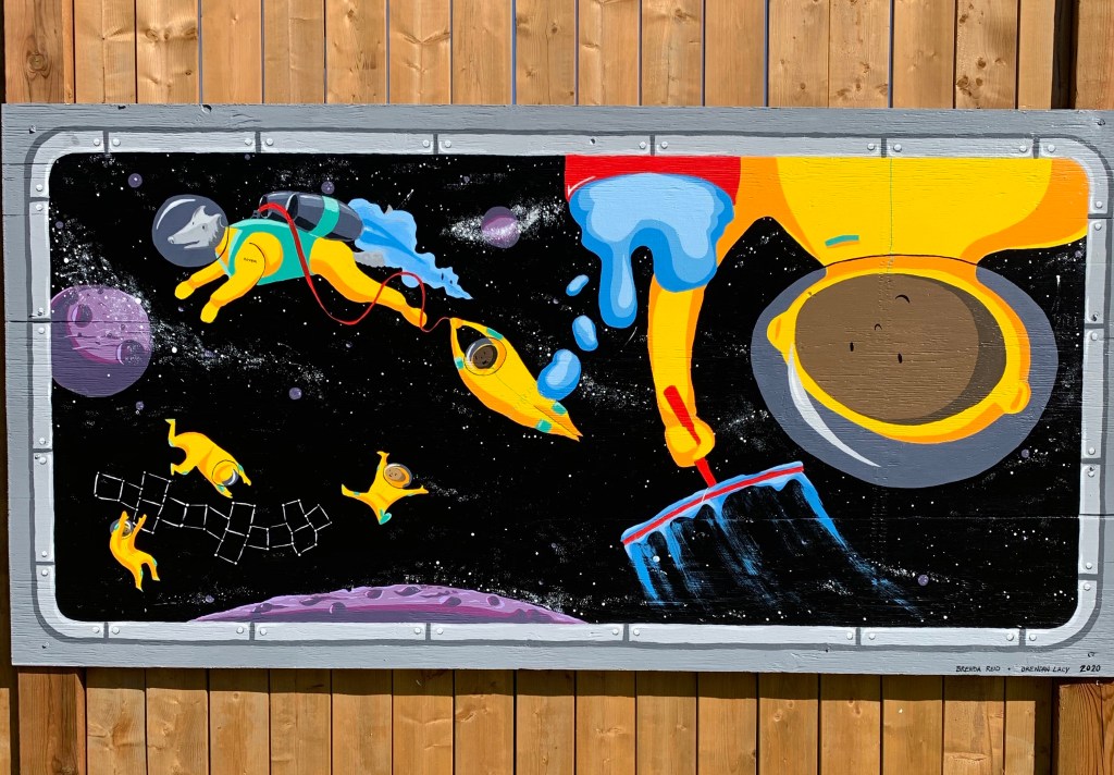 Shannondale Developments built the fence, as is required while the site is being developed. However, they went above & beyond to build a fence that would be the backdrop for a neighbourhood art project. Shannondale Developments also provided the 4×8 mural panels and the paint supplies needed to complete 20 works of art. Originally, the project was 10 panels, but a strong neighbourhood response quickly expanded the project to 20 murals. Thanks Shannondale! Thanks Neighbours!