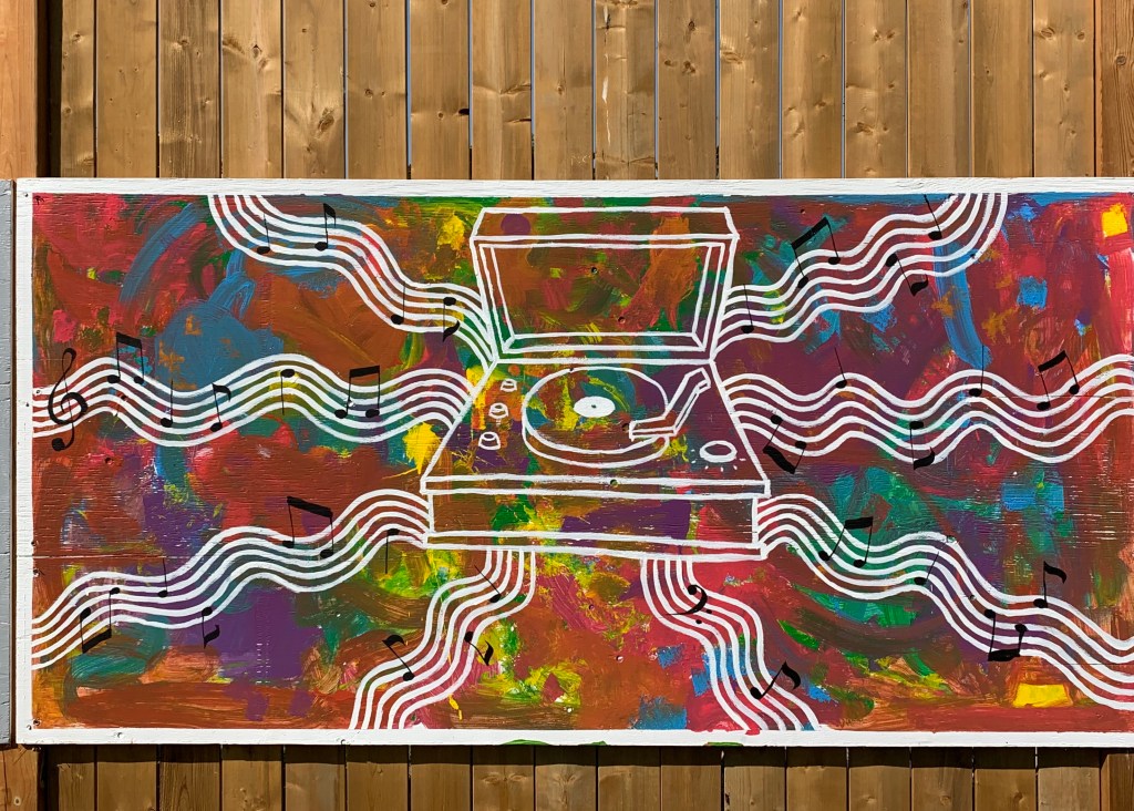 They were inspired by the history of Electrohome and the products they used to produce. The record player in the painting is based on an Electrohome design in an effort to pay tribute to the old building’s roots as a maker of phonographs, record players and television sets.