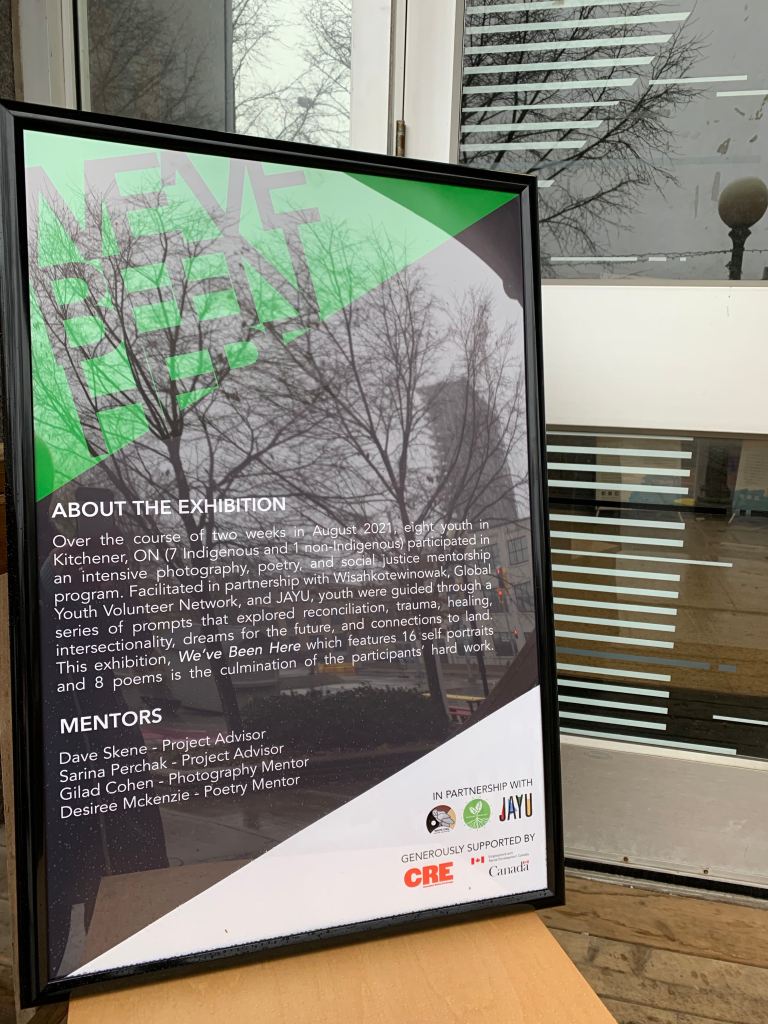We’ve Been Here is a photography & poetry exhibit created by eight youth in Kitchener (7 Indigenous and 1 non-Indigenous) who participated an intensive photography, poetry and social justice mentorship program.