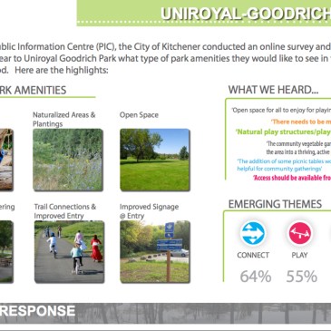 You might recall that the Uniroyal Goodrich Park on Guelph Street is slated for a park rehabilitation. We received this update by email from Jonn Barton at the City of Kitchener. Jonn is heading up the park improvement plan and wanted to notify people about the latest plans. Jonn writes: This email is to make … More Update on Uniroyal Goodrich Park Improvements